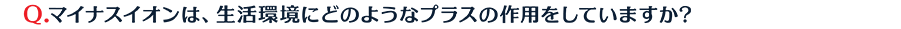 「マイナスイオンの効果」は、「プラスイオンの弊害」と表裏一体の関係にあります。身体がプラ スイオンリッチに傾くと、不定愁訴やアレルキー、内蔵疾患を引き起こします。